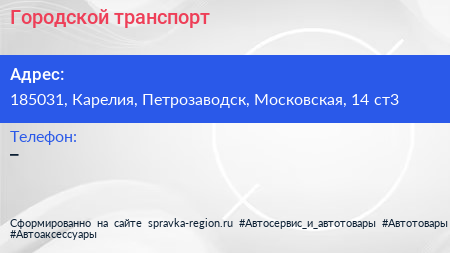 Городской транспорт по адресу 185031, Карелия, Петрозаводск, Московская, 14 ст3 в дальнейшем Организация, размещена в следующих категориях: