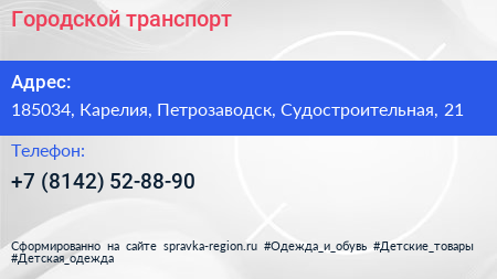 Городской транспорт по адресу 185034, Карелия, Петрозаводск, Судостроительная, 21 в дальнейшем Организация, размещена в следующих категориях: