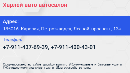 Харлей-авто, автосалон по адресу 185016, Карелия, Петрозаводск, Лесной проспект, 13а в дальнейшем Организация, размещена в следующих категориях: