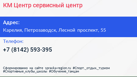 КМ-Центр, сервисный центр по адресу Карелия, Петрозаводск, Лесной проспект, 55 в дальнейшем Организация, размещена в следующих категориях:
