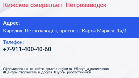 Кижское ожерелье, г. Петрозаводск по адресу Карелия, Петрозаводск, проспект Карла Маркса, 1а/1 в дальнейшем Организация, размещена в следующих категориях: