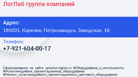 ЛогЛаб, группа компаний по адресу 185031, Карелия, Петрозаводск, Заводская, 18 в дальнейшем Организация, размещена в следующих категориях: