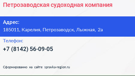 Петрозаводская судоходная компания по адресу 185011, Карелия, Петрозаводск, Лыжная, 2а в дальнейшем Организация, размещена в следующих категориях: