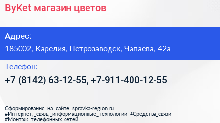 ByKet, магазин цветов по адресу 185002, Карелия, Петрозаводск, Чапаева, 42а в дальнейшем Организация, размещена в следующих категориях: