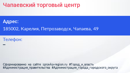 Чапаевский, торговый центр по адресу 185002, Карелия, Петрозаводск, Чапаева, 49 в дальнейшем Организация, размещена в следующих категориях: