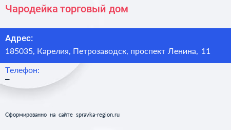 Чародейка, торговый дом по адресу 185035, Карелия, Петрозаводск, проспект Ленина, 11 в дальнейшем Организация, размещена в следующих категориях: