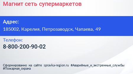 Магнит, сеть супермаркетов по адресу 185002, Карелия, Петрозаводск, Чапаева, 49 в дальнейшем Организация, размещена в следующих категориях: