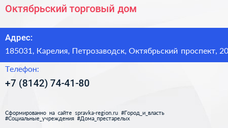 Октябрьский, торговый дом по адресу 185031, Карелия, Петрозаводск, Октябрьский проспект, 20 в дальнейшем Организация, размещена в следующих категориях: