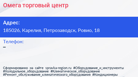 Омега, торговый центр по адресу 185026, Карелия, Петрозаводск, Ровио, 18 в дальнейшем Организация, размещена в следующих категориях: