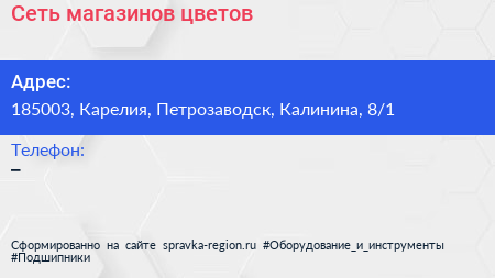 Сеть магазинов цветов по адресу 185003, Карелия, Петрозаводск, Калинина, 8/1 в дальнейшем Организация, размещена в следующих категориях:
