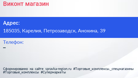 Виконт, магазин по адресу 185035, Карелия, Петрозаводск, Анохина, 39 в дальнейшем Организация, размещена в следующих категориях: