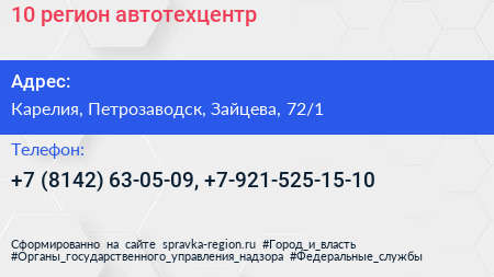 10 регион, автотехцентр по адресу Карелия, Петрозаводск, Зайцева, 72/1 в дальнейшем Организация, размещена в следующих категориях: