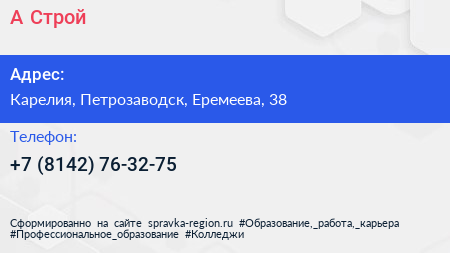 А-Строй по адресу Карелия, Петрозаводск, Еремеева, 38 в дальнейшем Организация, размещена в следующих категориях: