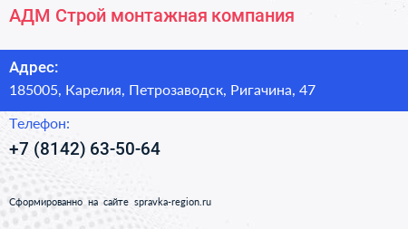 АДМ-Строй, монтажная компания по адресу 185005, Карелия, Петрозаводск, Ригачина, 47 в дальнейшем Организация, размещена в следующих категориях: