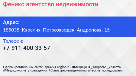 Феникс, агентство недвижимости по адресу 185035, Карелия, Петрозаводск, Андропова, 15 в дальнейшем Организация, размещена в следующих категориях: