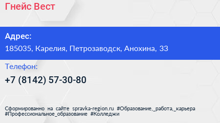 Гнейс Вест по адресу 185035, Карелия, Петрозаводск, Анохина, 33 в дальнейшем Организация, размещена в следующих категориях:
