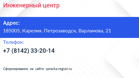 Инженерный центр по адресу 185005, Карелия, Петрозаводск, Варламова, 21 в дальнейшем Организация, размещена в следующих категориях: