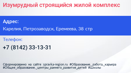 Изумрудный, строящийся жилой комплекс по адресу Карелия, Петрозаводск, Еремеева, 38 стр в дальнейшем Организация, размещена в следующих категориях: