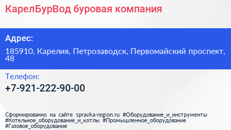 КарелБурВод, буровая компания по адресу 185910, Карелия, Петрозаводск, Первомайский проспект, 48 в дальнейшем Организация, размещена в следующих категориях: