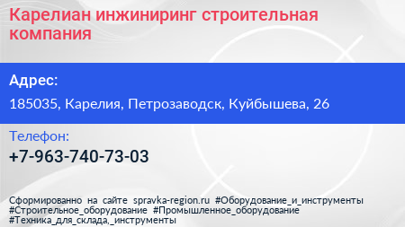 Карелиан инжиниринг, строительная компания по адресу 185035, Карелия, Петрозаводск, Куйбышева, 26 в дальнейшем Организация, размещена в следующих категориях: