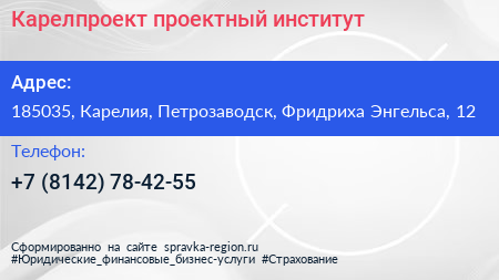 Карелпроект, проектный институт по адресу 185035, Карелия, Петрозаводск, Фридриха Энгельса, 12 в дальнейшем Организация, размещена в следующих категориях:
