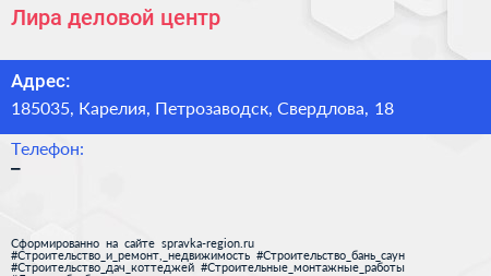 Лира, деловой центр по адресу 185035, Карелия, Петрозаводск, Свердлова, 18 в дальнейшем Организация, размещена в следующих категориях: