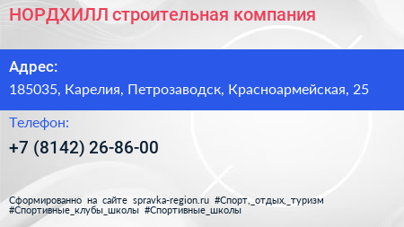 НОРДХИЛЛ, строительная компания по адресу 185035, Карелия, Петрозаводск, Красноармейская, 25 в дальнейшем Организация, размещена в следующих категориях: