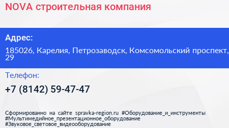 NOVA, строительная компания по адресу 185026, Карелия, Петрозаводск, Комсомольский проспект, 29 в дальнейшем Организация, размещена в следующих категориях: