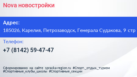Nova, новостройки по адресу 185026, Карелия, Петрозаводск, Генерала Судакова, 9 стр в дальнейшем Организация, размещена в следующих категориях: