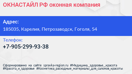 ОКНАСТАЙЛ.РФ, оконная компания по адресу 185035, Карелия, Петрозаводск, Гоголя, 54 в дальнейшем Организация, размещена в следующих категориях:
