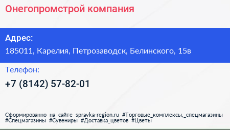 Онегопромстрой, компания по адресу 185011, Карелия, Петрозаводск, Белинского, 15в в дальнейшем Организация, размещена в следующих категориях: