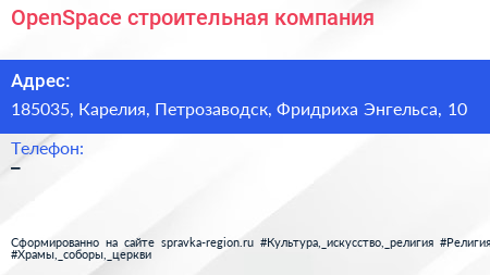 OpenSpace, строительная компания по адресу 185035, Карелия, Петрозаводск, Фридриха Энгельса, 10 в дальнейшем Организация, размещена в следующих категориях: