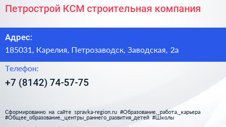 Петрострой КСМ, строительная компания по адресу 185031, Карелия, Петрозаводск, Заводская, 2а в дальнейшем Организация, размещена в следующих категориях: