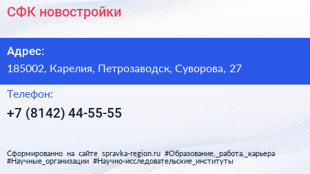 СФК, новостройки по адресу 185002, Карелия, Петрозаводск, Суворова, 27 в дальнейшем Организация, размещена в следующих категориях: