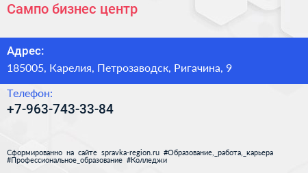 Сампо, бизнес-центр по адресу 185005, Карелия, Петрозаводск, Ригачина, 9 в дальнейшем Организация, размещена в следующих категориях: