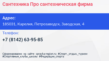 Сантехника-Про, сантехническая фирма по адресу 185031, Карелия, Петрозаводск, Заводская, 4 в дальнейшем Организация, размещена в следующих категориях: