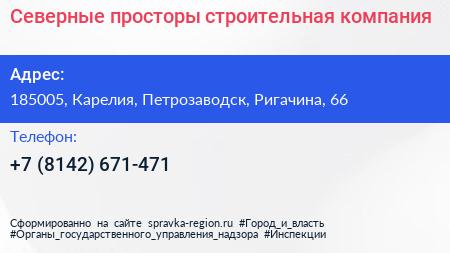 Северные просторы, строительная компания по адресу 185005, Карелия, Петрозаводск, Ригачина, 66 в дальнейшем Организация, размещена в следующих категориях: