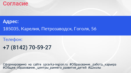 Согласие по адресу 185035, Карелия, Петрозаводск, Гоголя, 56 в дальнейшем Организация, размещена в следующих категориях: