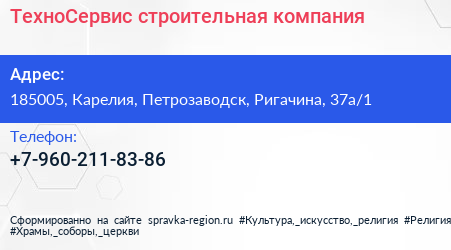 ТехноСервис, строительная компания по адресу 185005, Карелия, Петрозаводск, Ригачина, 37а/1 в дальнейшем Организация, размещена в следующих категориях: