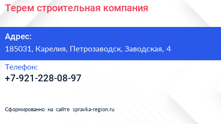 Терем, строительная компания по адресу 185031, Карелия, Петрозаводск, Заводская, 4 в дальнейшем Организация, размещена в следующих категориях: