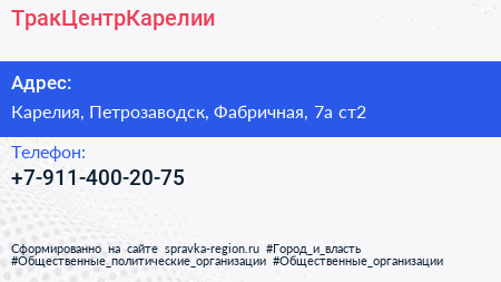 ТракЦентрКарелии по адресу Карелия, Петрозаводск, Фабричная, 7а ст2 в дальнейшем Организация, размещена в следующих категориях: