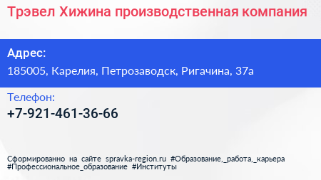 Трэвел Хижина, производственная компания по адресу 185005, Карелия, Петрозаводск, Ригачина, 37а в дальнейшем Организация, размещена в следующих категориях:
