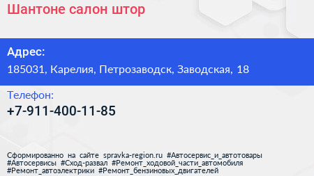 Шантоне, салон штор по адресу 185031, Карелия, Петрозаводск, Заводская, 18 в дальнейшем Организация, размещена в следующих категориях: