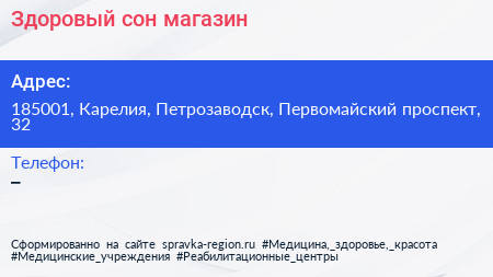 Здоровый сон, магазин по адресу 185001, Карелия, Петрозаводск, Первомайский проспект, 32 в дальнейшем Организация, размещена в следующих категориях: