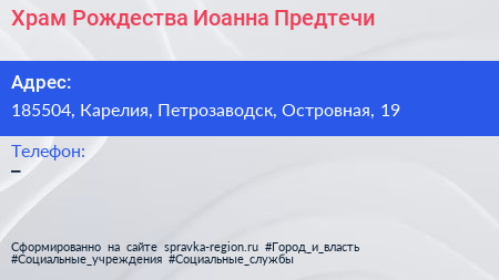 Храм Рождества Иоанна Предтечи по адресу 185504, Карелия, Петрозаводск, Островная, 19 в дальнейшем Организация, размещена в следующих категориях: