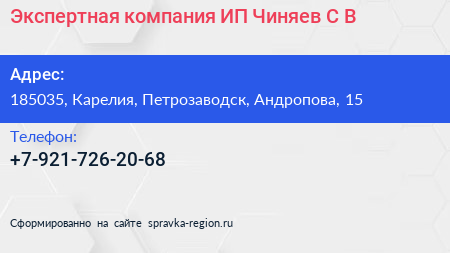 Экспертная компания, ИП Чиняев С.В. по адресу 185035, Карелия, Петрозаводск, Андропова, 15 в дальнейшем Организация, размещена в следующих категориях: