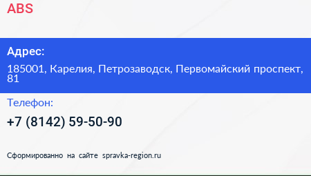 ABS по адресу 185001, Карелия, Петрозаводск, Первомайский проспект, 81 в дальнейшем Организация, размещена в следующих категориях: