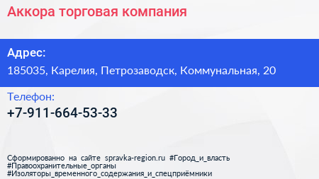 Аккора, торговая компания по адресу 185035, Карелия, Петрозаводск, Коммунальная, 20 в дальнейшем Организация, размещена в следующих категориях: