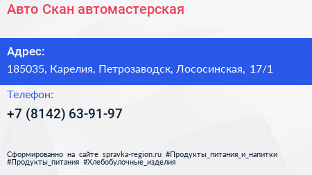 Авто-Скан, автомастерская по адресу 185035, Карелия, Петрозаводск, Лососинская, 17/1 в дальнейшем Организация, размещена в следующих категориях: