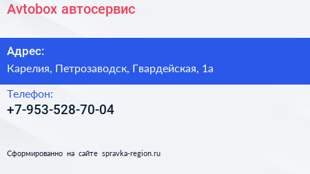 Avtobox, автосервис по адресу Карелия, Петрозаводск, Гвардейская, 1а в дальнейшем Организация, размещена в следующих категориях: